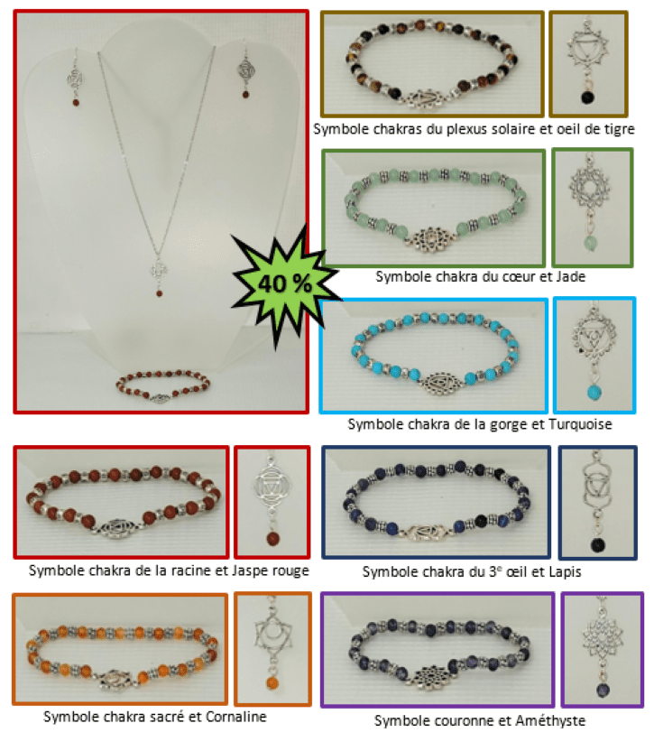 RABAIS 40 % sur Boucles d'oreilles, colliers et ensembles de bijoux ___Informations sur les intentions canalisées, les commandes et les définitions des chakras et des pierres